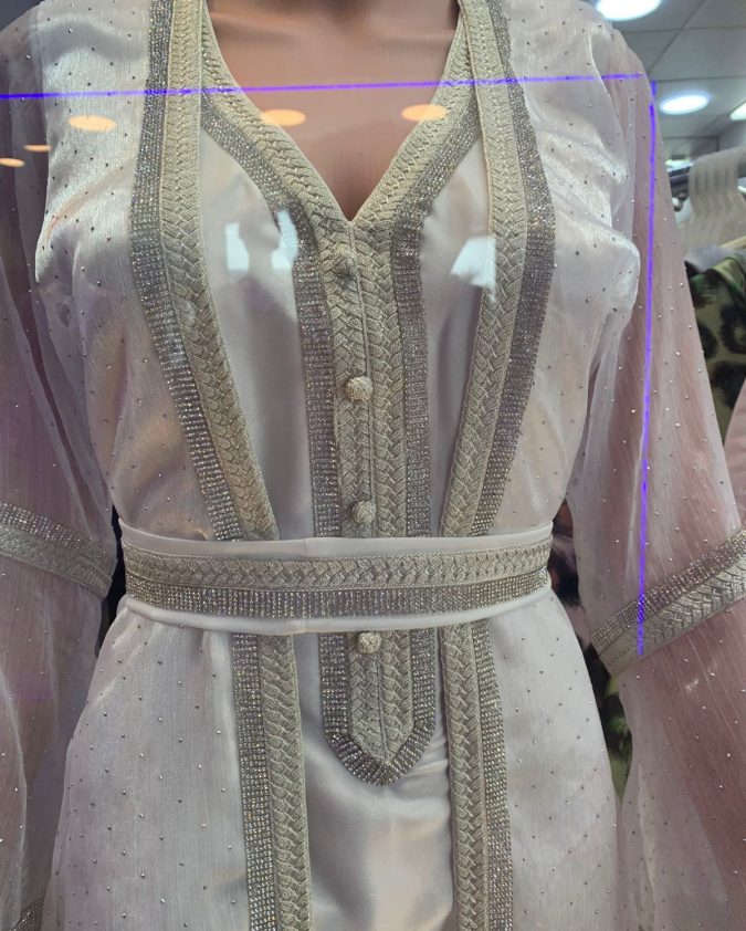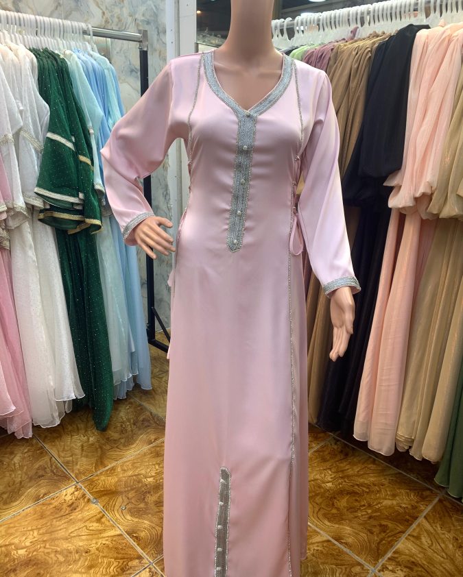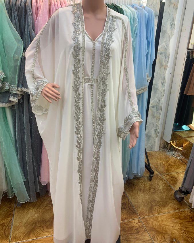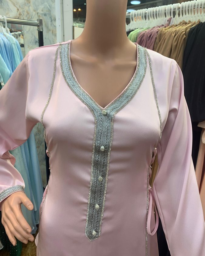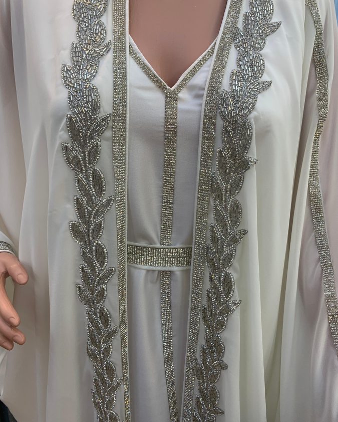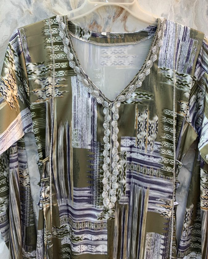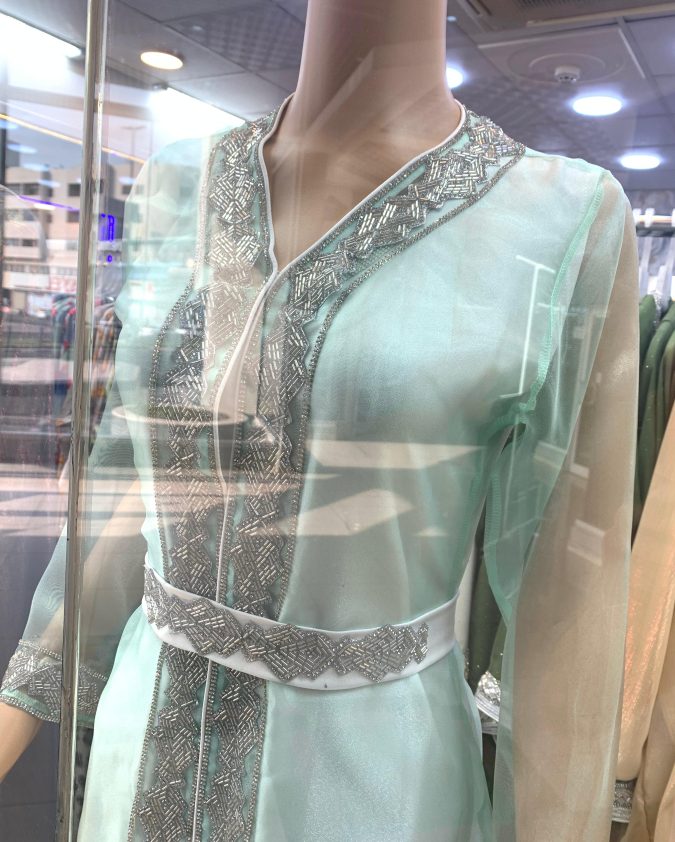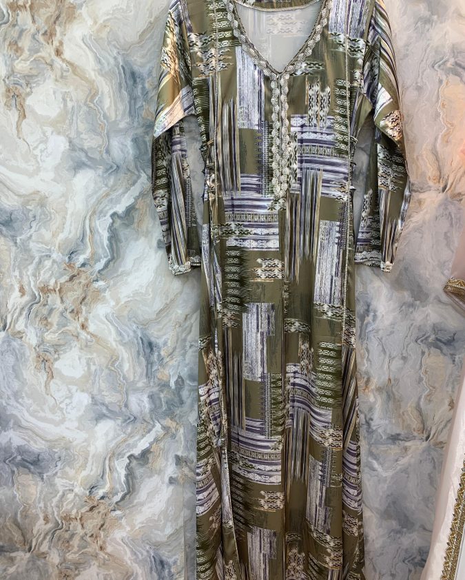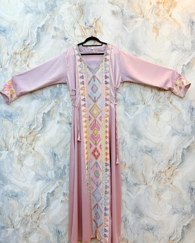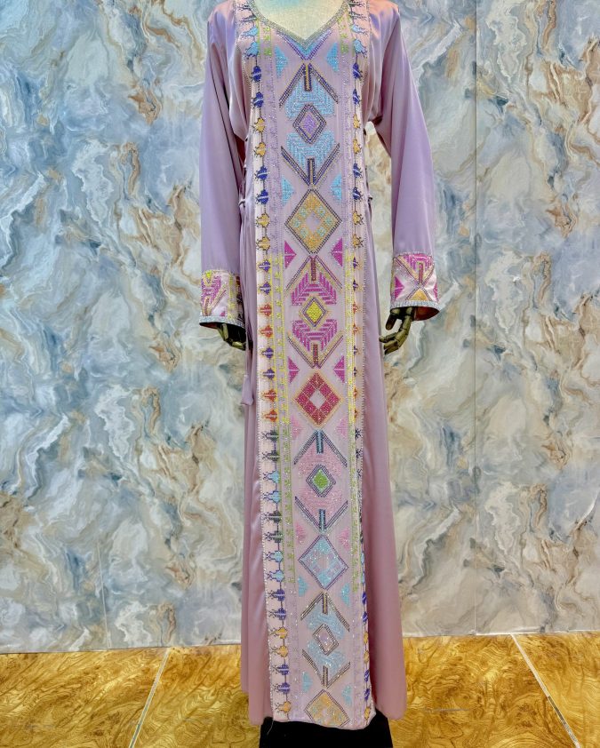 Moroccan Embroidered Jalabiya Multicolor Geometric Beading