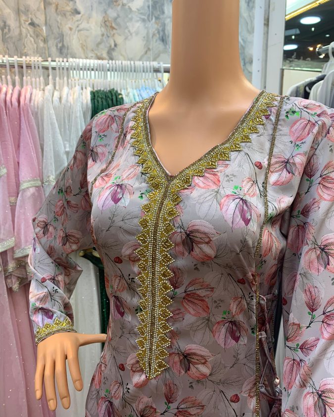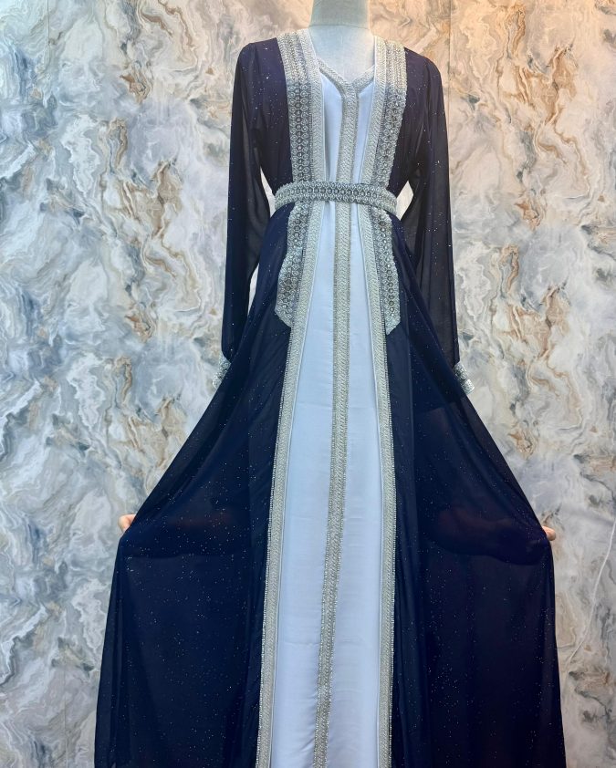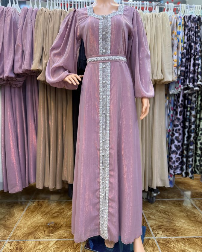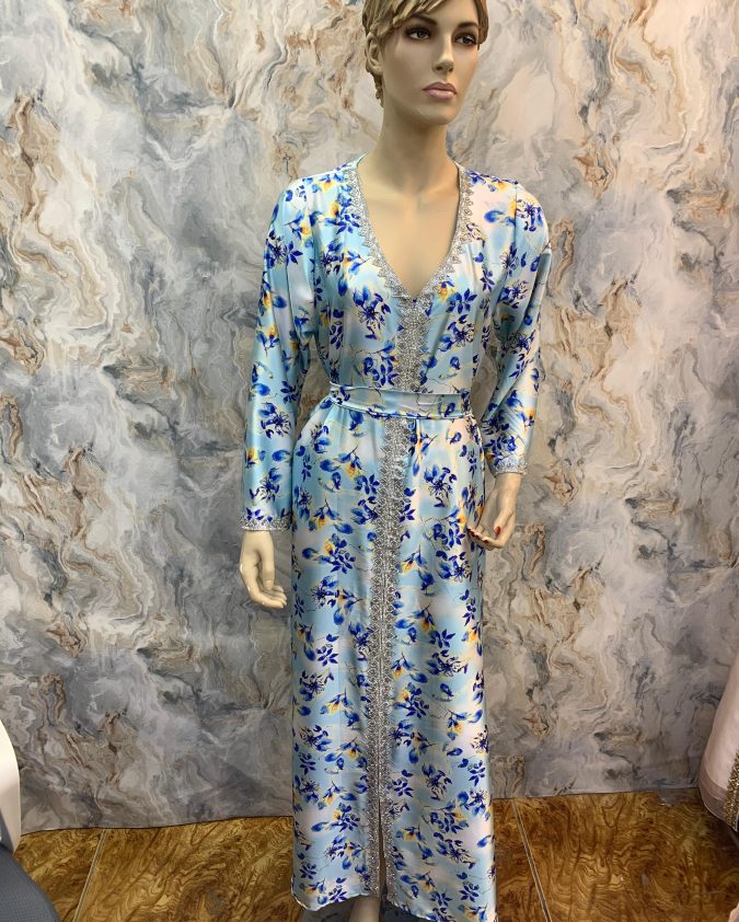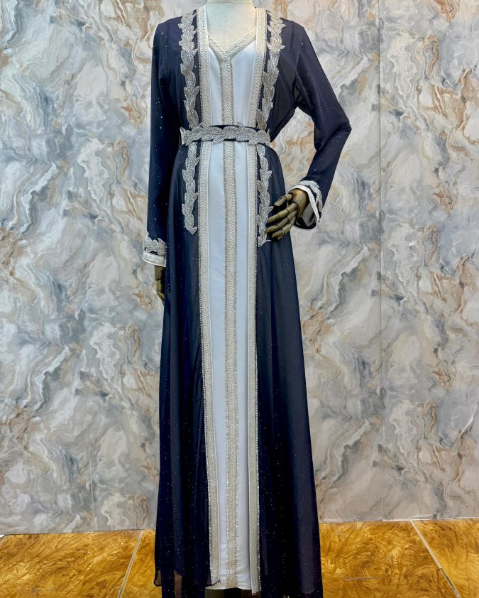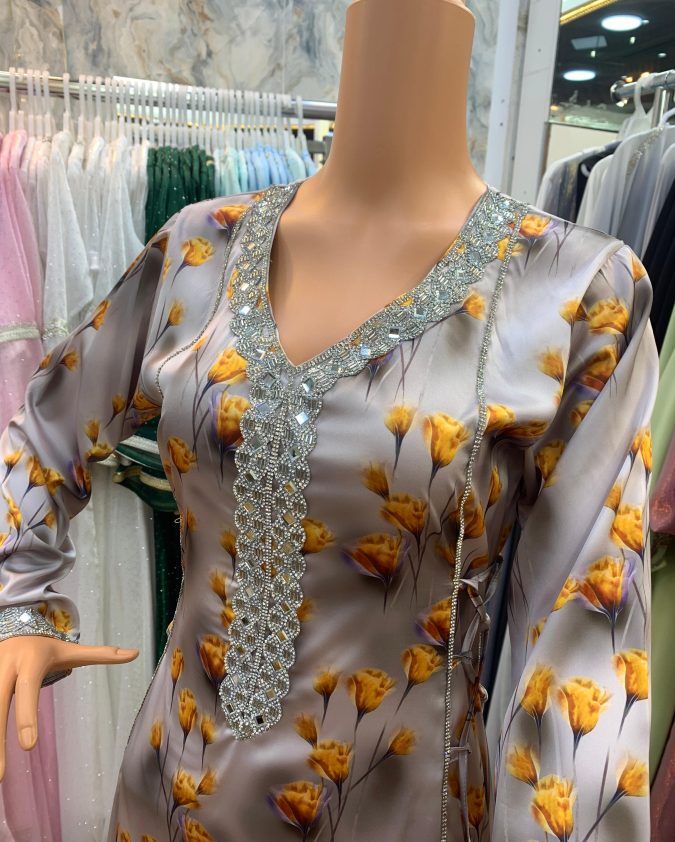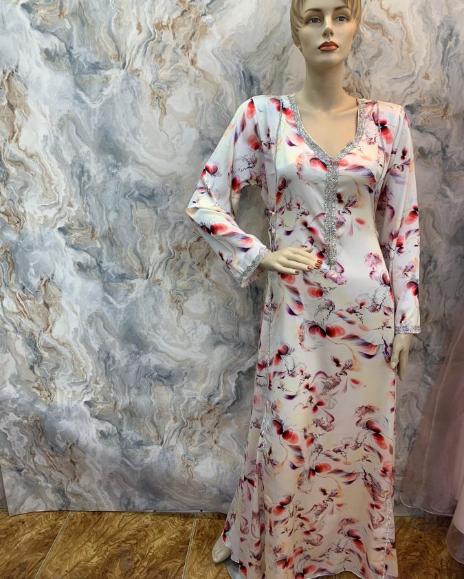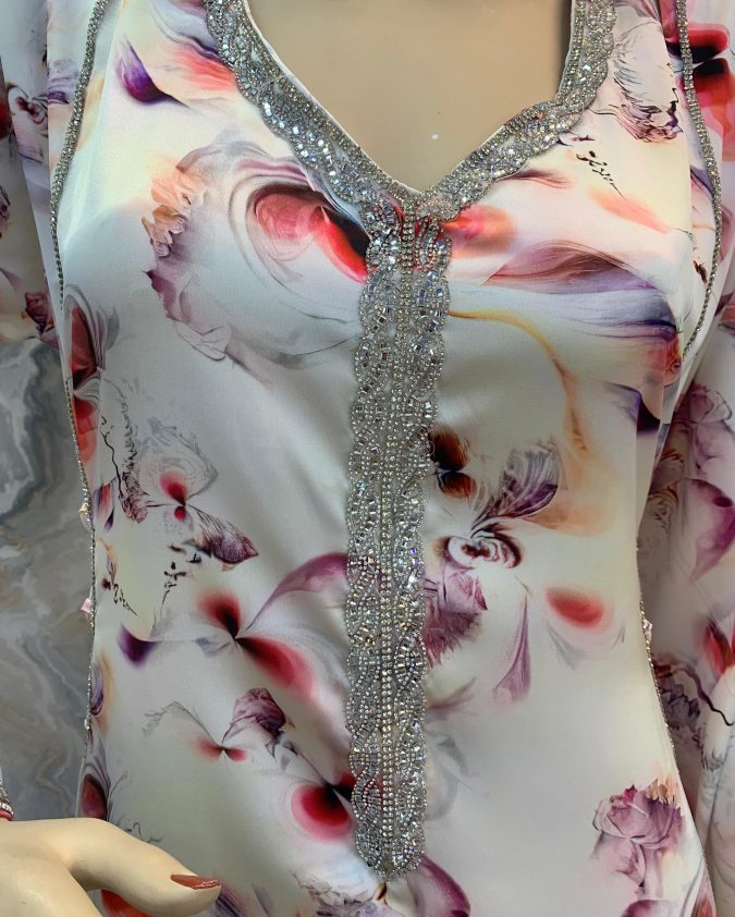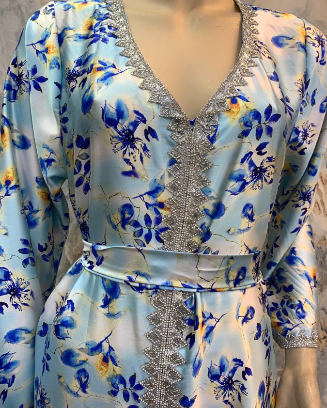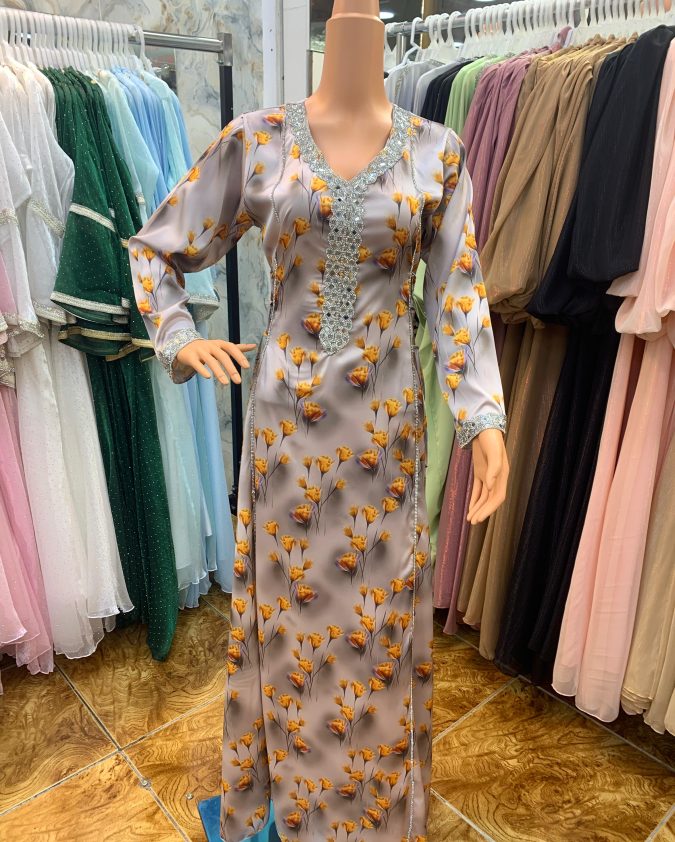 Moroccan Embroidered Jalabiya Multicolor Geometric Beading